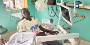 Kevin awaiting his dental check. Your support makes holiday health check ups like this possible.