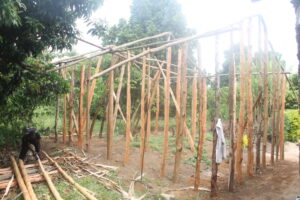 Thanks to Helping Hands for Vulnerable Children-HHVC for providing the finances to purchase all required materials. The local leadership and local Seventh Day Adventist( in which Zilpa is a member) have since supported WOOVC in mobilizing the community members to offer manual labour as volunteers. The wattle framework of the house is already up, the walls will be completed with daub and the final works will then be done. The family will then be safe and sedrick can then be comfortable and feel safe returning home every school holiday to spend time with his grandmother